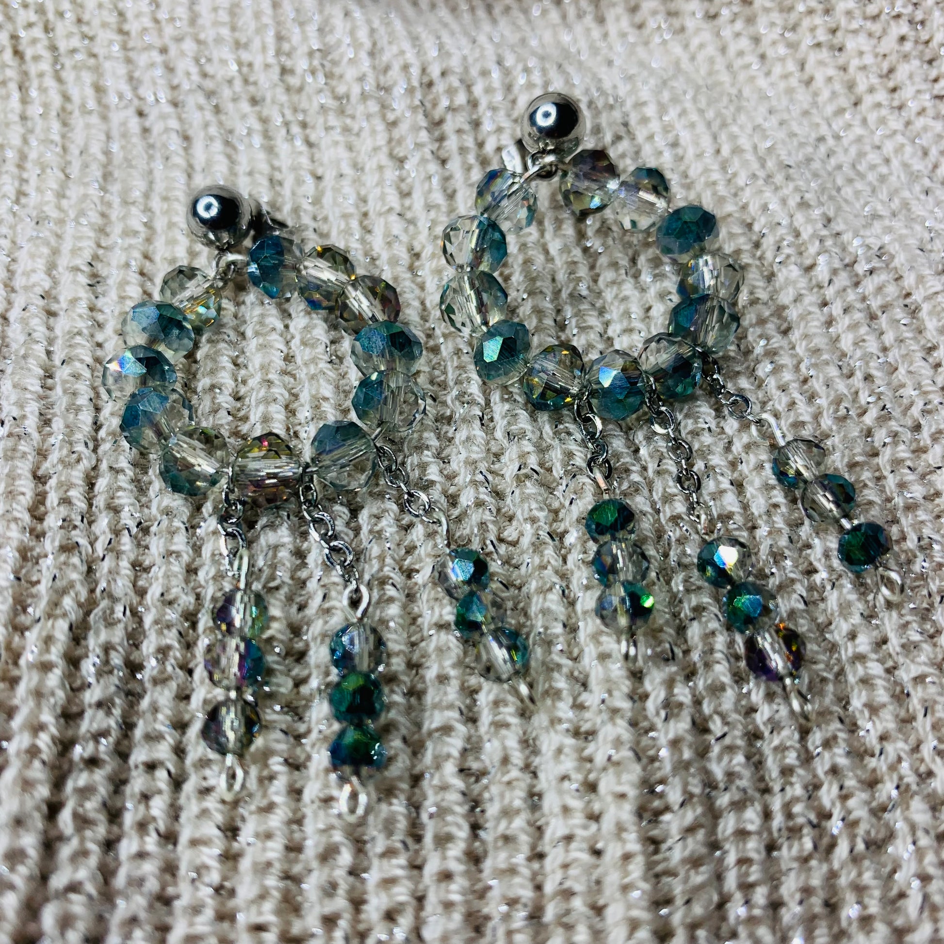 - Boucles d’oreilles en acier inoxydable et perles de cristal.