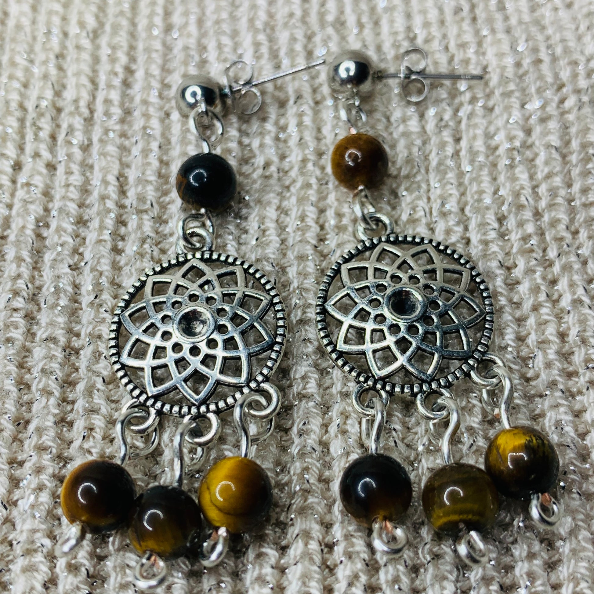 - Boucles d’oreilles en acier inoxydable réalisées avec des perles naturelles.