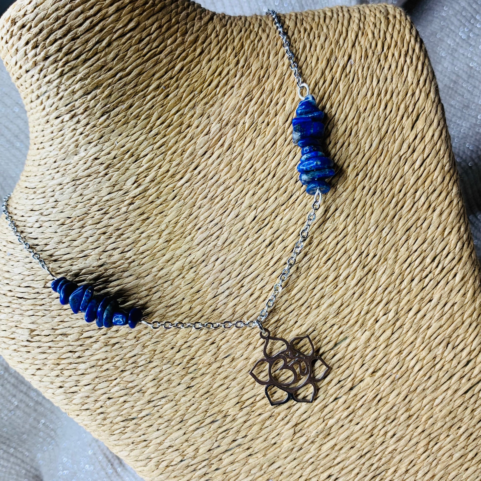 Un bijou profond et inspirant, alliant la sagesse millénaire du lapis lazuli à la vibration sacrée du symbole Ohm.