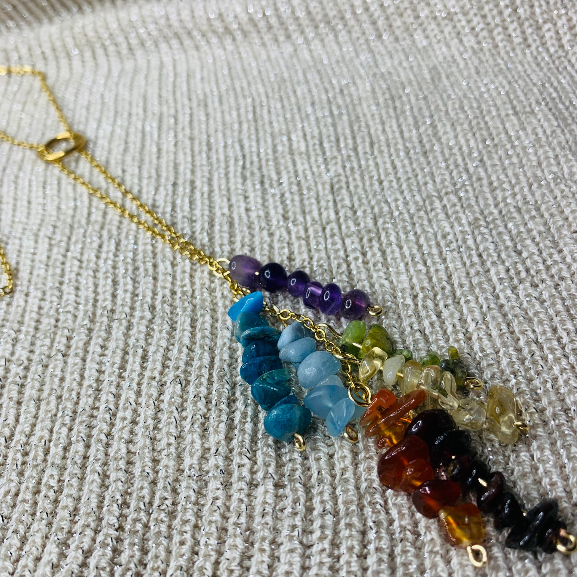 Ce collier en perles naturelles représente les 7 chakras, centres énergétiques du corps, chacun associé à une couleur et une vibration spécifique. Il aide à rééquilibrer l’énergie, favoriser le bien-être général et stimuler la connexion corps-esprit.