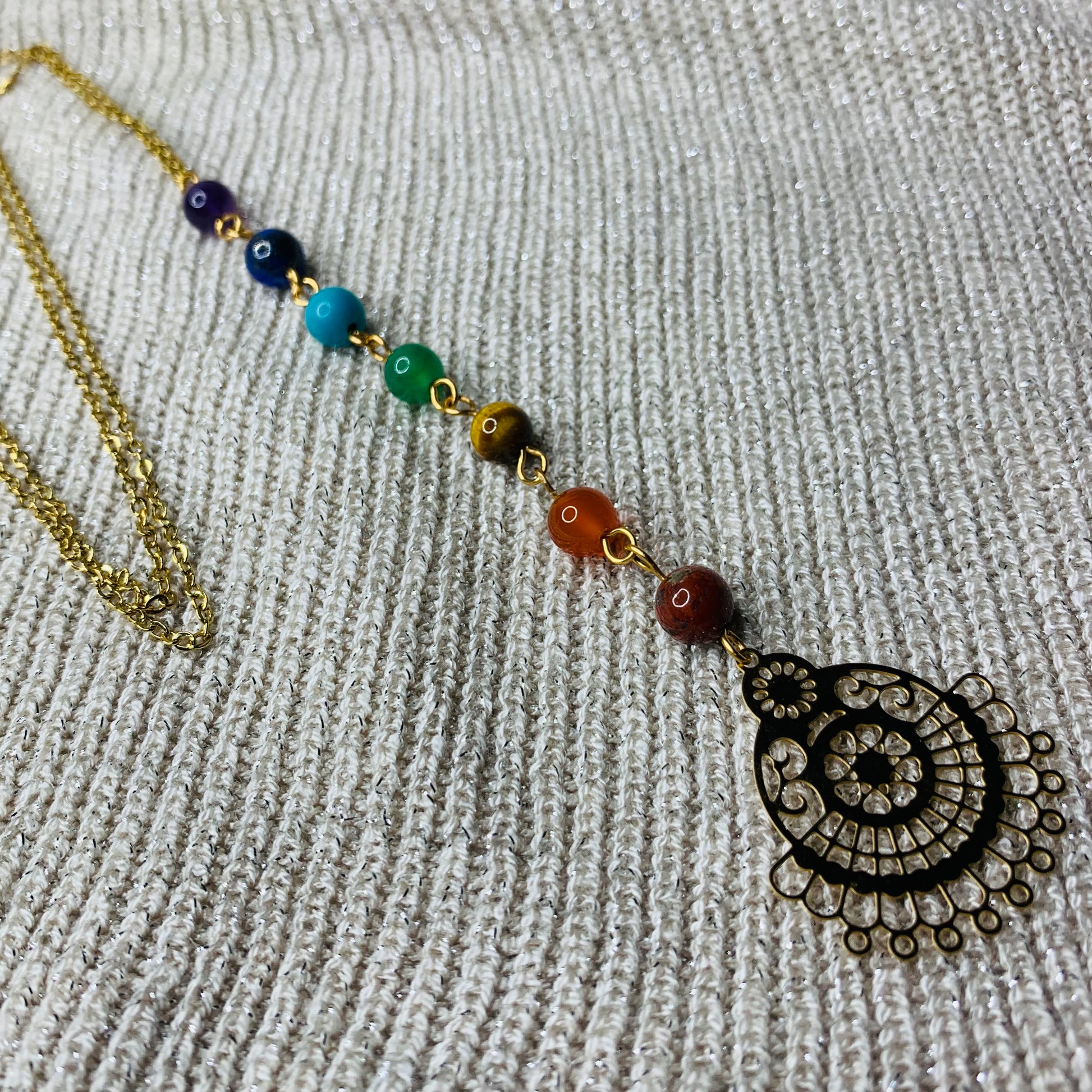 Ce sautoir réunit les pierres précieuses associées aux 7 chakras pour une harmonie énergétique complète :